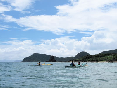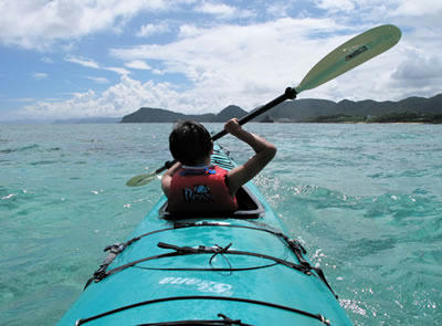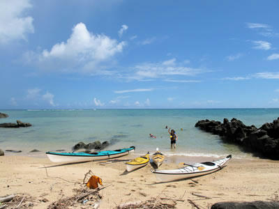 シュノーケルは無し、お茶もおやつもないショートコースです。しかしシーカヤックの滑る感覚、あのきれいな海が目の前にあるという新鮮さ、そして自由に水の上を進む開放感は充分体験していただく事ができたようです。次回はぜひ、度肝を抜かれる珊瑚礁でのシュノーケルを体験してください。