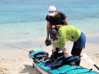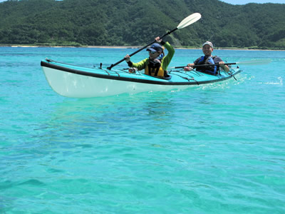 関西からのお客さんをつれて笠利湾へ。そこは波の音だけが聞こえる静かな海岸。ああ、もうリラックス120%。つり好きなお二人はマイロッドご持参です。それよりもなんやねんこの暑さといって日陰で休憩。梅雨が明けた奄美は痛いほどの日差しになってきました。白い砂浜でのんびりし、初めてのシーカヤックを体験。初めての奄美大島で最高の海を体験してしまったら、もうやめられない?
