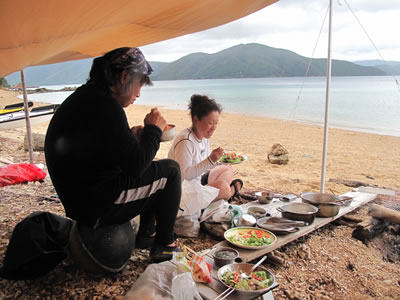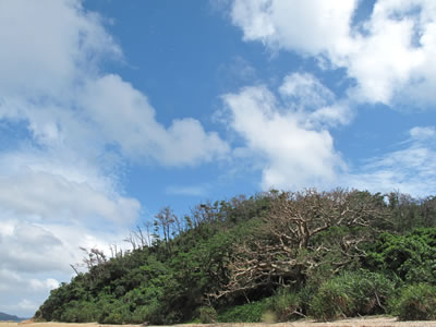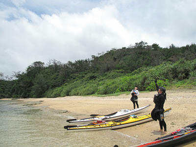 昨日20日、無事にカケロマでの3泊4日キャンプを終えて戻りました。前線が近いために強い南風が吹き、とうとうカケロマ島1周はならず。瀬戸内でのキャンプとなりました。開始前日はバケツをひっくり返したような雨。開始日も移動中の山の峠は霧で前が見えず。大丈夫かと思われた出だし。そしてやっぱり初日の夜はどしゃ降りの洗礼を受けました。押さえてないとタープが吹っ飛びそうな風と雨の中、「ああ、またこの海岸に来られたんだなあ」と変な感傷にひたっていた私。お客さんの女性陣は雨がふるや、素早くテント入り込み、朝まで出てこられず。おりこうに9時消灯となりました。それでも時々雲がきれて晴れるとやはり奄美大島。美しい青空と海がきらりと輝いていました。まだ水温が冷たいですがシュノーケルもできました。そしてなかなか体験する事のない強い風や波にもまれることとなりました。おかげでとうとう見る事なく終わったカケロマ島の外側。次回に新たな目標を残す事となりました。