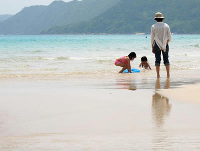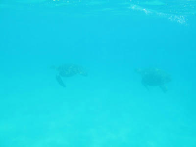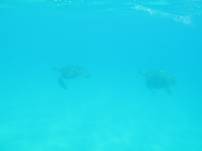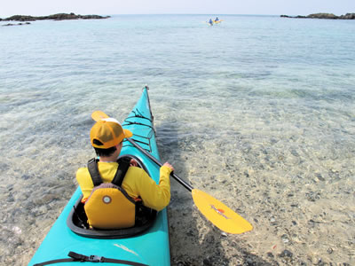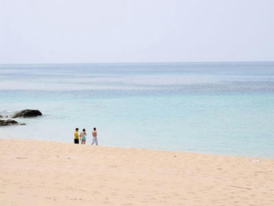 昨日に続き1dayツアー。文句の言いようの無いあっぱれな天気。サーフポイントである手広海岸からの出艇。しかし波はわずかでサーファーもわずか。そんな日はカヤックが最高という事。プールか?と思う程、ほんとうに水色な海面を滑るカヤック。ただただ気持ちがいい。暑いくらいの日差しが出た今日は、水着だけで泳ぎました。天国を絵に描いたような鮮やかな海の光景に立つご家族。たまらずシャッターを切ります。帰り道にはとても大きなウミガメのつがいがカヤックの至近距離を泳いでゆき、娘さんはお喜び。去年見られなかったリベンジを果たしました。ガイドとしましても、こんなに素晴らしい条件でのカヤックツアーはそうそう多くはありません。なにかのよい巡り合わせにただ心から感謝します。明日からの元気を、この2日間でたっぷり充電したような、そんなさわやかなツアーでありました。
