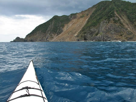 奄美大島中部、太平洋側に突き出した市崎という岬がある。そこは荒れる難所でも有名なところ。数回カヤックで通ったことがあり、大きな洞窟を何度か見かけた。今回はあらためてその位置や様子を調べに単身カヤックで探検。台風のうねりが残る外洋は迫力がある。かつて海賊が財宝を隠したという洞窟はおそらくはそこのことではないかという気がする。
