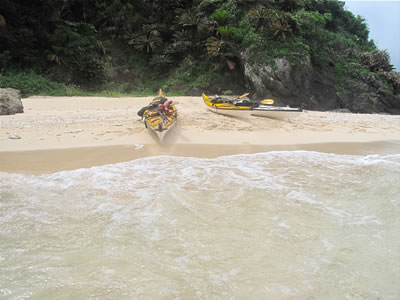 笠利湾をぶっちぎって横断。龍郷湾から崎原海岸まで。少々の横風におっかなびっくりのゲストでしたが、それでも毎回よく漕いでいます。シーカヤックマラソンのときも、こんな風は当たり前。慣れなくてはね。霧雨のような天気かとおもいきや、自分たちの頭上だけが晴れていました。やっぱり晴れると美しい海であります。