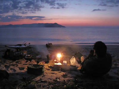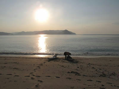 年の瀬も迫る12月の奄美大島。昼間の日差しは25度。朝晩は10度前後。夏と冬が交互にやってくる中、澄んだ海と空に恵まれたキャンプツアーとなりました。リピーターさんの念願だった笠利崎灯台も回れる穏やかな海。行けるときに行ってしまおうと一気に長距離を漕いだ中日。豪雨災害以来初めて通った島の北部の沿岸線。ところどころに凄まじい土砂崩れの後を確認しました。しかし美しく透き通った冬の海。空、朝日、夕焼け。夜はダウンのシュラフ、朝晩は薄めのダウンや中綿入りのジャケットなどが必要ですが、それはそれで焚き火のありがたさがまた身に染みます。お湯割りの格別なこと。最高の天気で締めくくった2010年最後のキャンプでした。