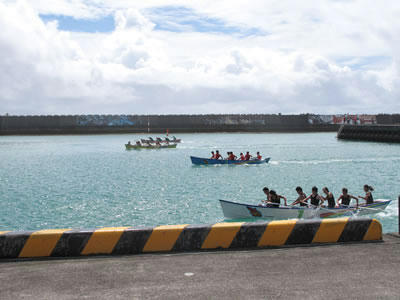 毎年天気が荒れる8月初旬、恒例のあやまる祭りが笠利町にて開催されました。各集落、また一般チームなども含めて大勢のチームが舟漕ぎ大会にて熱い戦いを繰り広げ、会場となった万屋漁港は観客と選手の熱気に包まれていました。そんな中で私も地元の節田集落チームで出場。練習を重ね、作戦も練り、本番に臨みました。全員一丸となって戦い抜いた結果、初の決勝進出、そして3位となりました。昨年の1位、2位のチームを破っての3位です。集落としては快挙でした。1位、2位はいずれも20代、30代で構成されたチーム。それに対して50代から20代と、年齢ごちゃごちゃなチームで近差ですから大健闘とも言えます。しかし個人的に、2位に近い差で及ばなかったことが悔しく、高校球児のようにたまらず涙がこぼれました。ああ、青春。奄美大島万歳!みんなも出よう、舟漕ぎ大会。そして後夜祭。太鼓や踊り、島唄などで盛り上げ、最後は花火大会。星空も出てすばらしい火の芸術を一同ため息をこぼして鑑賞。2010年のあやまる祭りはこうして静かに幕を閉じたのでした。