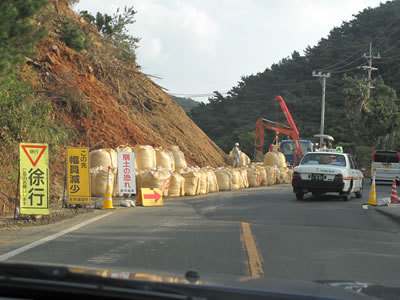あの豪雨からはや一ヶ月が経とうとしている。いまだに家に帰れない方、無くなった方がいたことを考えるとやはり尋常ではなかったと思い返す。写真の土砂は、笠利(北部)と名瀬方面を断ち切った巨大な土砂崩れだった。しかしそれもようやく撤去のめどがついたようで、名瀬からの帰りには作業が始まっていた。爪痕がまだまだ残っているが、交通はだいぶ回復。生活は落ち着きを取り戻し、島のラジオもいまでは通常放送だ。観光は大打撃だが、それでもときどき観光バスも見かける。