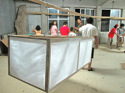 さあ、7月23日(土)は節田集落の六月灯というお祭りです。わたくし、総合司会を命じられましたので行かないわけにはいきません。その六月灯で道々にかざる提灯作りが始まりました。今年も一番大きいやつに絵を描くのがもう一の私の大仕事。