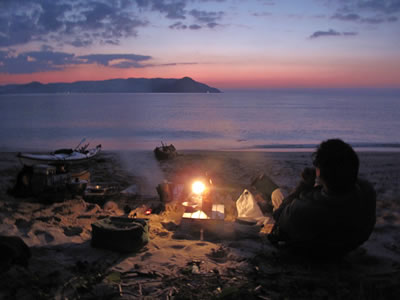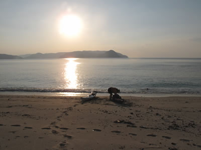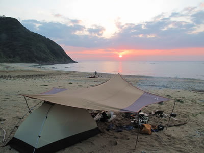 年の瀬も迫る12月の奄美大島。昼間の日差しは25度。朝晩は10度前後。夏と冬が交互にやってくる中、澄んだ海と空に恵まれたキャンプツアーとなりました。リピーターさんの念願だった笠利崎灯台も回れる穏やかな海。行けるときに行ってしまおうと一気に長距離を漕いだ中日。豪雨災害以来初めて通った島の北部の沿岸線。ところどころに凄まじい土砂崩れの後を確認しました。しかし美しく透き通った冬の海。空、朝日、夕焼け。夜はダウンのシュラフ、朝晩は薄めのダウンや中綿入りのジャケットなどが必要ですが、それはそれで焚き火のありがたさがまた身に染みます。お湯割りの格別なこと。最高の天気で締めくくった2010年最後のキャンプでした。