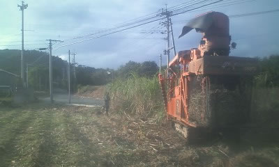 早くうちの畑をやってくれとか、なんであそこはもう刈り取ったのにうちはまだんなんだ、などなど、飛び交う地主さんたちの声。この時期の収穫だけが収入という方も少なくなく、みな必死です。ハーベスター(オレンジの戦車みたいなやつ)も朝から暗くなるまで稼動しています。補助員も毎日泥だらけで格闘中。さすがにまだハブはでてきません。なんせこの奄美大島でも、マフラーにニットの帽子、薄いダウンみたいな格好をしています。例年にない寒さらしいです。そんな冬でもお楽しがあります。小高い丘の上の畑で仕事をしていると、大海原が見渡せます。今日はなんと、3つのグループのクジラが別々に泳いでいる姿が目に入りました。むかし、海は広いな大きいな〜♫と歌った景色そのものです。