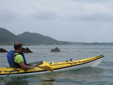 昨日5月6日、いよいよ奄美地方も梅雨入り宣言が出されました。週間天気予報をみれば雨マークたっぷりです。でも梅雨も、GWは待ってくれましたね。今日、7日はどしゃ降りです。犬のブーケも外に出られずにソファーで眠り込んでいます。さわやかな晴れ間にめぐまれたGWでしたが、慌てて海岸を走った時にオークリーのサングラスを無くしてしまいました。海中に沈んだのか、海岸で落として誰かに拾われたのか…。その場所を3回もいったりきたりしても見つからず。これで海に何本サングラスを寄付した事か。しばらくへこんでいましたが、新しい出会いの前触れなどと前向きに考えて元気を出して行きます。そうそう、これから雨が多くなりますが、シーカヤックマラソントレーニングや、カヤックレッスンは結構おもしろくなりますよ! 雨上がりの、もやの浮かぶ海を静かに進むカヤックなんかも神秘的で素晴らしいです。雨なんか関係ない、と言う元気な方、どんどんお越し下さい。私もそういうお客さんだとなおさら燃えてきます!