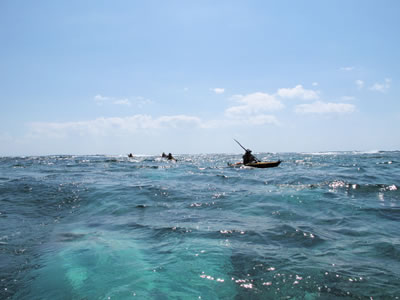 ガルフブルーカヤックスでは、引率するゲストの人数を最大で4名にしてあります。海の条件が厳しかったりすれば1名で閉め切ってしまうこともあり、最大人数をお受けすることは実は稀。しかし、たまにあるんです。海がまあまあ静かで、風もどうにかなりそうで、そんなときに受けるフル出動のリクエストはお受けしています。過去には4名のガイドがついて最大20数人という引率も行ったことがありますが、もう何が何だかわかりません。まともに話ができた人は2、3人でしょう。