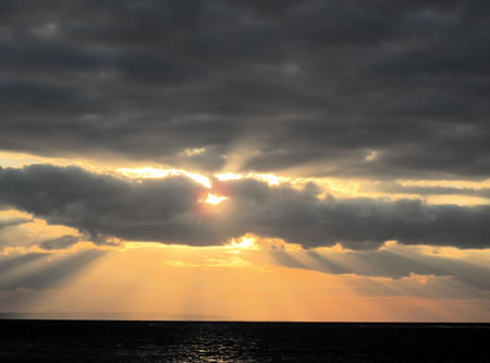 カヤックごと吹き飛びそうな風が吹く中、どうにか風をかわせそうな場所でカヤックを出艇。波なし、人なしの、年末の手広海岸。挑むはパパと娘さんのご家族ペア。30日は雨だったので陸地をご案内。今日こそはという意気込みだったことでしょう。どんより曇る空も時々晴れ間をみせ、雲と太陽光線の不思議な光景が広がる。まるで魔法にでもかかったかのようなな光に照らされ、親子の初カヤックは無事終わるのでした。それにしても時々照らす太陽がほんとうにきれいでした。今年の最後をしめくくるに、素晴らしい光を見せて頂きました。
