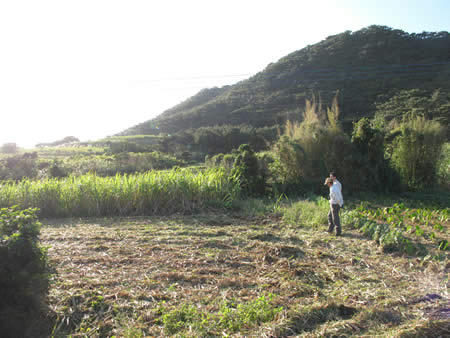 今日もせっせとサトウキビ畑で汗を流していました。雨が上がったばかりの畑などはぬかるんでおり、傾斜のきつい部分である畑の隅では、キビを刈るハーベスターと言う大きな機械を運転する人も気を使います。それは、いつもの様にそんな畑の端へハーベスターが来たときでした。ぱっと運転手が飛び降り、からまった草などをとる長柄の鎌で、前方のキビを慌ただしくかき分けているのです。なんで地形を確認するのにそんなに慌ただしいのかと思っていたら、「ハブ!」と叫びました。ええ!!?と一瞬血の気が引く自分。始めどこにいるのか全然分かりませんでしたが、その長い鎌が指し示す前方にいました。やつが。にょろにょろと大きな体をはわせ、懸命に草陰へ逃げようとしています。軽トラックにハブ取り棒を置いてあったのでとってくるかと訪ねると、なんとその運転手さん、長柄の鎌で頭を押さえつけ、ハンドキャッチ!。そして肥料袋にいれられ、役場へもっていって4000円です。全長1mはあったでしょうか。出現にびっくり。手づかみに仰天。。いやいや、島のひとはすごいです。余談ですが、ハブをいれた袋などは、必ず車の外のどこかにしばりましょう。いぜん、ハブを入れた箱を車内に入れていた人で、ハブに逃げられた人がいました。そしてとうとう車内でハブを見つけられず、ついには車を売った人がいたそうです。でもその車買った人、大丈夫?