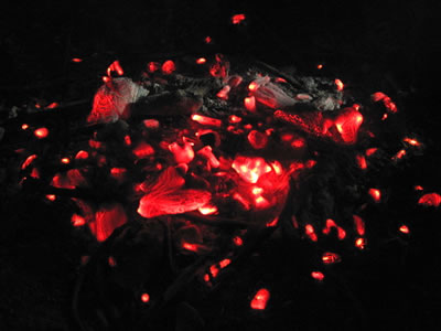 さておき、今日はベーコン作りがおわるとすっかりあたりは暗がりに。焚き火の残り火をみていたらうっとりとしていく。自然のやさしいイルミネーションは遠赤外線の癒したっぷりでした。