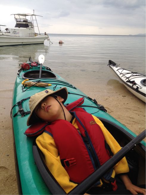 さて、走るのに必死だったので写真ゼロ。でも終わった後に息子に海への散歩にひっぱられ、そこで横たわる2mほどのイタチザメと遭遇。2mっていってもどでかいボディ、ざっくりといきそうなアゴと歯はすごいです!