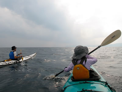 二人組のゲストさんとショートツアーへ。男性は経験者。女性はほとんど初心者。初めはダブルカヤックをとのリクエストが、直前にやはりシングルカヤックへの変更になりました。そして当日。なんと女性はすっかりダブルカヤックでいけると思っていたのに、男性が独断でシングルを希望していたことが分かり、一瞬騒然。