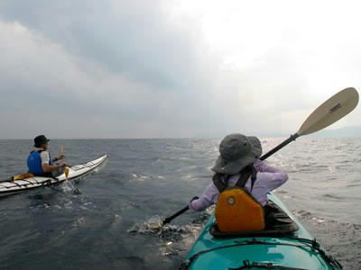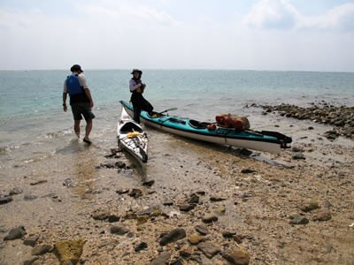 しかしよく振り返ると、ガルフブルーカヤックスのお客さんたちは女性の割合が多く、かなりハードなツアーをリクエストしてくるのもいつも女性です。もしかしたら、慣れると強いのは女性の方ではないかと思います。無駄とは思ってもそんな言葉をかけてゲストを慰めつつ、いざ海へ。これが意外にもすいすいと前進。気がつけばしっかり漕いで目標のビーチに到着。