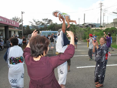 忙しくってすっかり過去の出来事になってしまいましたが、節田集落では23日に恒例の種おろしが行われました。なにそれっていう方々に説明いたします。10月の終わりごろ、集落の各家庭を組ごとに踊りまわるのです。例えば新婚さんの家とか、新築した家とか、赤ちゃんが生まれた家とか、おめでたいところを回って行くのです。そして昼から飲みまくり、食いまくり、それはそれは盛り上がるお祭りなのです。