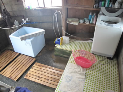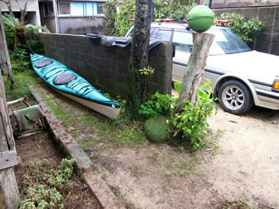 それは20日だったか。南下した台風が見事に戻ってきたのです。くるりと円を描いて。でもここらへんは毎年のこと、いつものこと。庭のカヤックが飛ぶこともないし、縛る必要もないのです。そして夜、轟音と共に叩きつける雨と風。みると廊下が水びたし。水滴ではなく、まるで水道の閉め忘れみたく、ストレートに水が天井からおたれになっているではありませんか! もちろんだからといって暴風域まっただ中の夜に屋根など見に行ったら吹っ飛ばされます。さっそく屋内アウトドア開始。ブルーシートを天井から垂らし、ひとつのバケツに雨漏りを集中させます。まるで水道の蛇口が開いてんのか、というくらいの勢い。8歳の娘がすわって入れるくらいのでかいバケツ。それがものの一時間くらいで7割はたまります。まめに排水。
